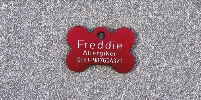 👓 Unsere Alu-Hundemarken, Knochen werden mechanisch graviert.